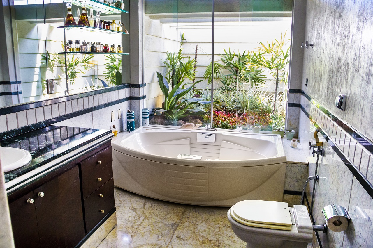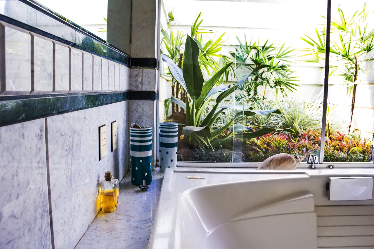 - Banho Suíte Casal – Parede e Banheira em Mármore e Granito Verde