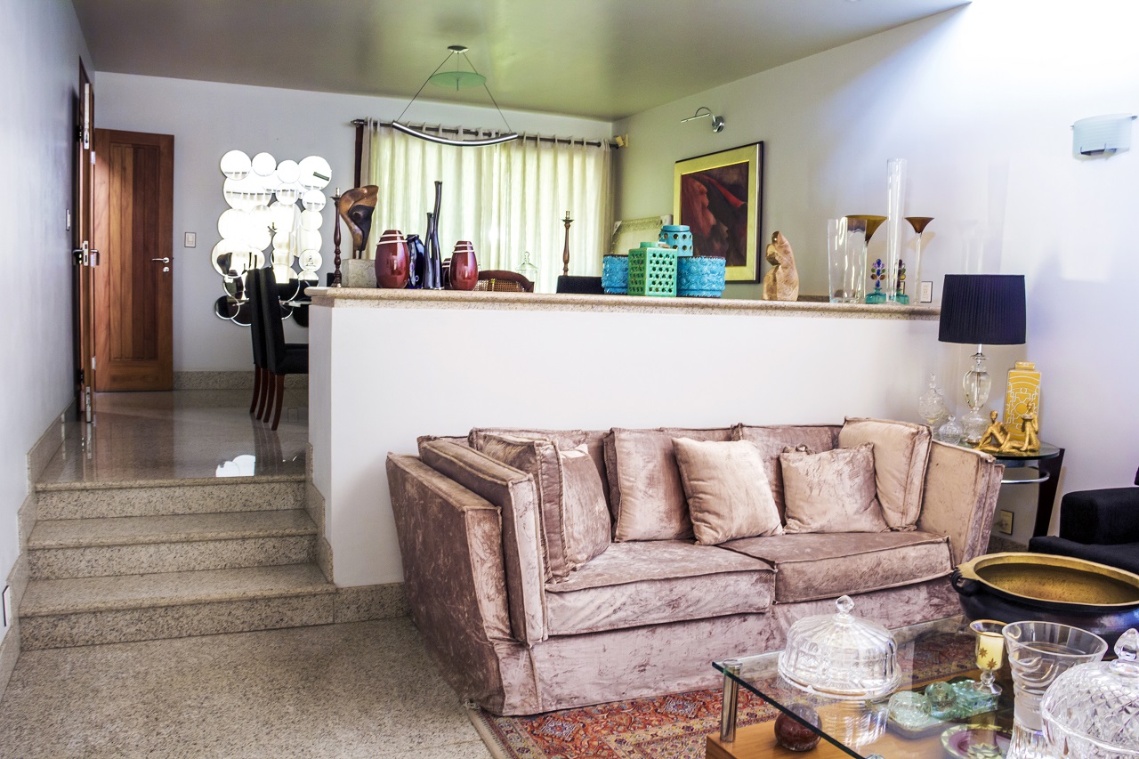 - Sala de Estar – Piso e Escada em Granito Branco Ceará Polido