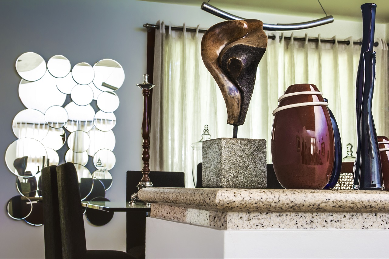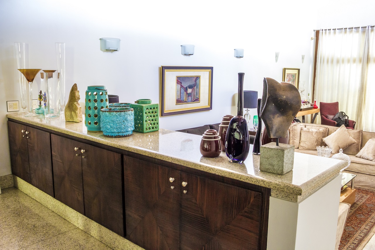 - Sala de Estar – Balcão esculpido em Granito Branco Ceará Polido